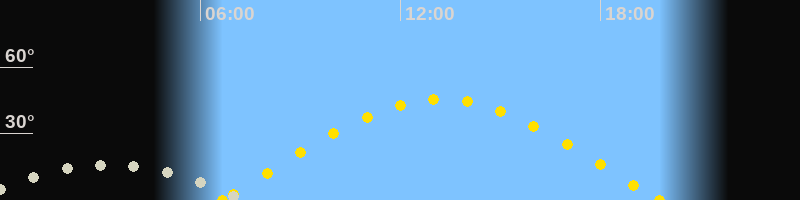 | Sonnenaufgang | 06:39 Uhr im Osten (αAz = 79.7°) |