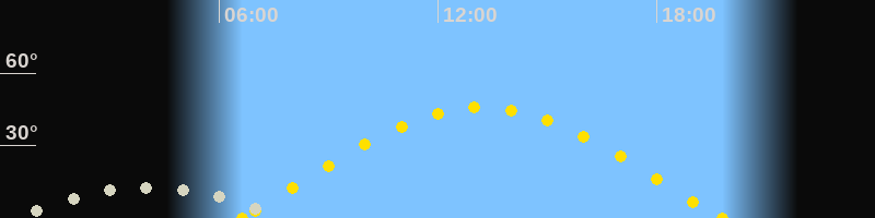 | Sonnenaufgang | 06:37 Uhr im Osten (αAz = 79.1°) |