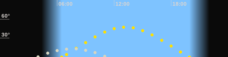 | Sonnenaufgang | 06:28 Uhr im Osten (αAz = 76.7°) |