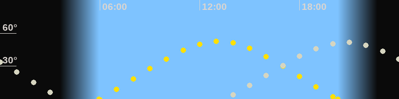 | Sonnenaufgang | 05:57 Uhr im Osten (αAz = 68.1°) |