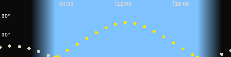 Sonnenaufgang05:44 Uhr im Nordosten (αAz = 64.5°)