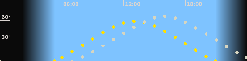 | Höchster Sonnenstand (Kulmination) | 13:06 Uhr (h = 59.1°) |