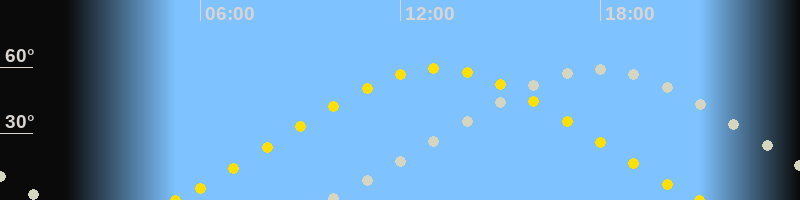 | Höchster Sonnenstand (Kulmination) | 13:06 Uhr (h = 59.5°) |