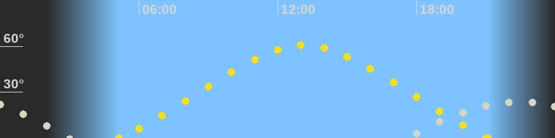 | Höchster Sonnenstand (Kulmination) | 13:07 Uhr (h = 60.6°) |