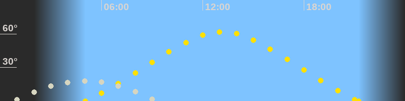 Höchster Sonnenstand (Kulmination)13:08 Uhr (h = 61.9°)