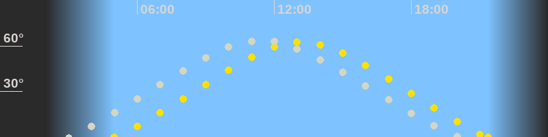 Höchster Sonnenstand (Kulmination)13:10 Uhr (h = 62.5°)