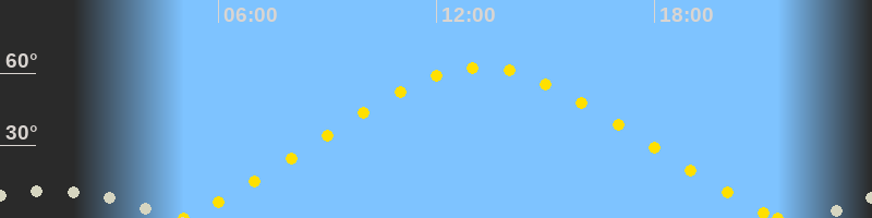 | Höchster Sonnenstand (Kulmination) | 13:13 Uhr (h = 62.4°) |