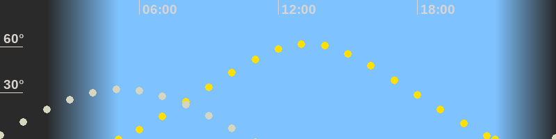 | Höchster Sonnenstand (Kulmination) | 13:14 Uhr (h = 62°) |