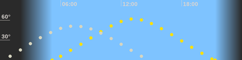 | Höchster Sonnenstand (Kulmination) | 13:15 Uhr (h = 61.7°) |