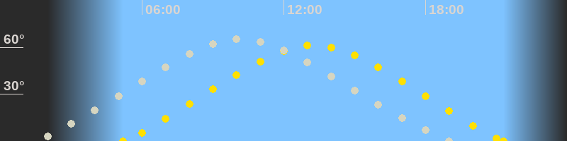 | Höchster Sonnenstand (Kulmination) | 13:15 Uhr (h = 61.3°) |