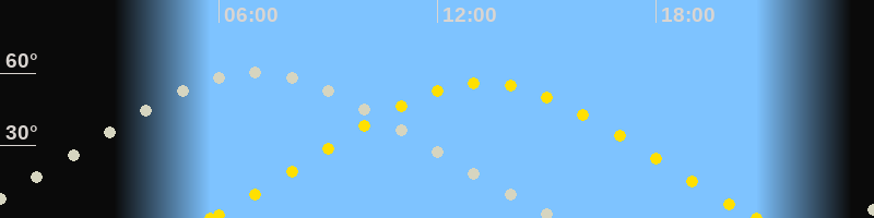 | Höchster Stand (Kulmination) | 06:55 Uhr (h=60°) |