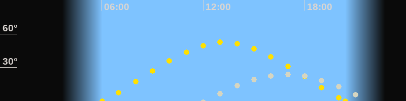 | Sonnenaufgang | 06:02 Uhr im Osten (αAz = 67.7°) |