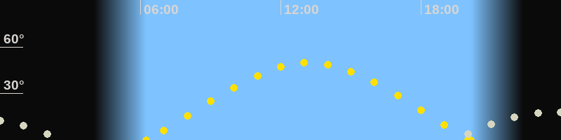 | Sonnenaufgang | 06:14 Uhr im Osten (αAz = 72.1°) |