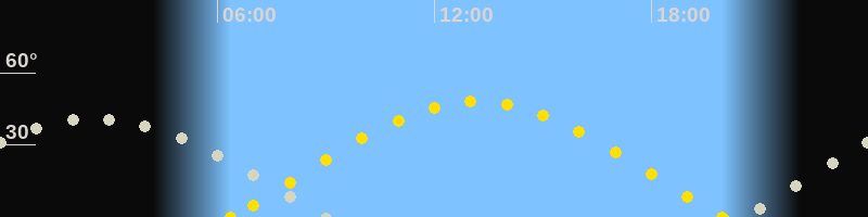 | Höchster Sonnenstand (Kulmination) | 13:10 Uhr (h = 48.2°) |