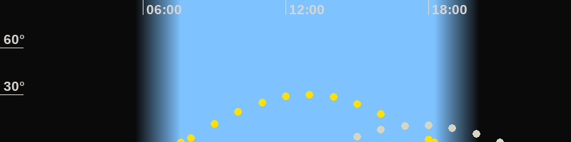 | Höchster Sonnenstand (Kulmination) | 12:55 Uhr (h = 30.3°) |