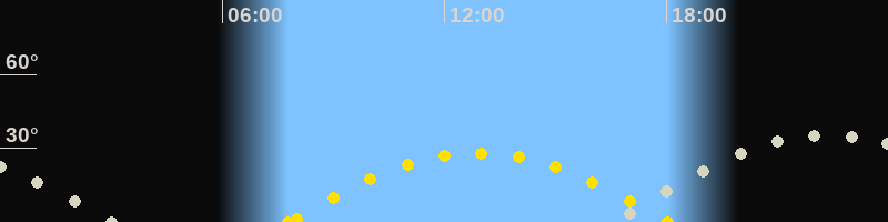 | Höchster Sonnenstand (Kulmination) | 12:54 Uhr (h = 28.1°) |