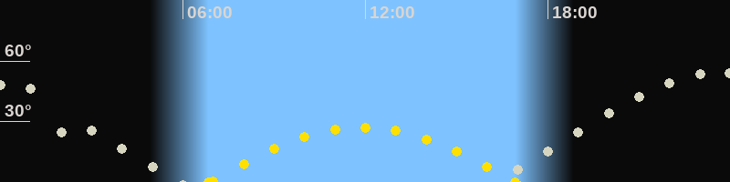 | Höchster Sonnenstand (Kulmination) | 11:54 Uhr (h = 27.1°) |
