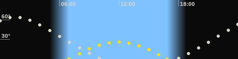 Höchster Stand (Kulmination)01:29 Uhr (h=63.8°)