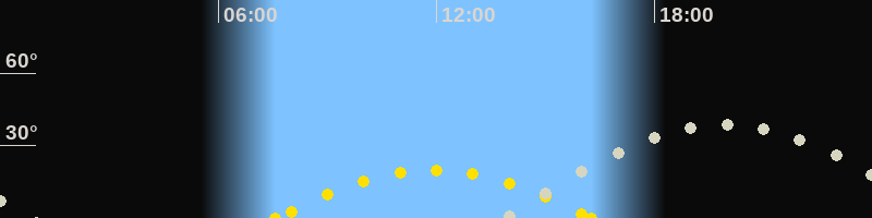 | Höchster Sonnenstand (Kulmination) | 11:55 Uhr (h = 19.7°) |