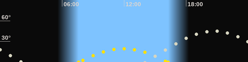 | Höchster Sonnenstand (Kulmination) | 11:55 Uhr (h = 19.5°) |