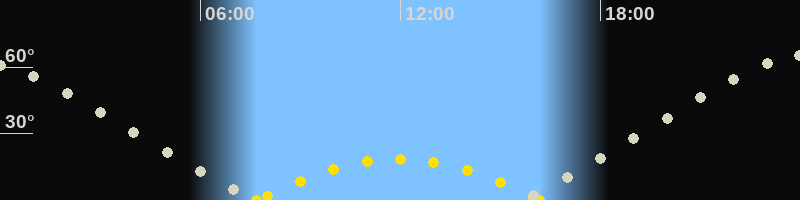 | Höchster Sonnenstand (Kulmination) | 11:56 Uhr (h = 18.7°) |