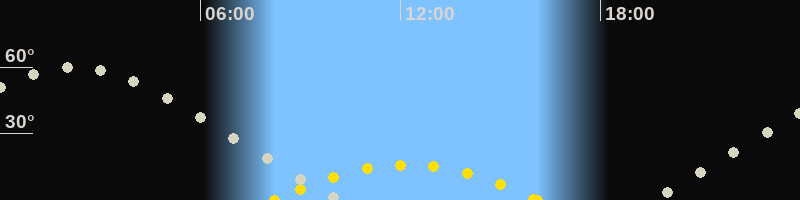 Höchster Sonnenstand (Kulmination)12:10 Uhr (h = 15.9°)