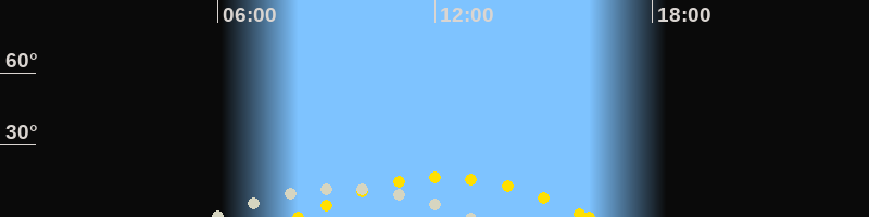 | Höchster Sonnenstand (Kulmination) | 12:15 Uhr (h = 16.6°) |