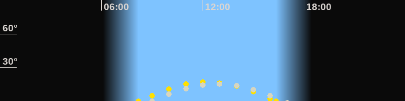 | Höchster Sonnenstand (Kulmination) | 12:16 Uhr (h = 17°) |