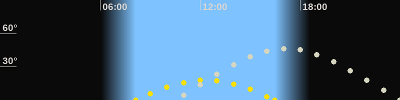 | Höchster Sonnenstand (Kulmination) | 12:19 Uhr (h = 18°) |