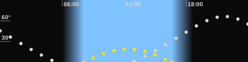| Höchster Sonnenstand (Kulmination) | 12:20 Uhr (h = 19°) |