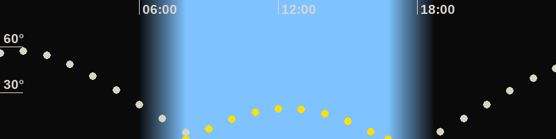| Höchster Sonnenstand (Kulmination) | 12:21 Uhr (h = 19.9°) |