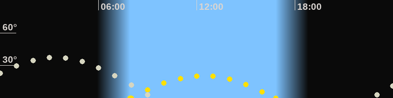 | Höchster Sonnenstand (Kulmination) | 12:22 Uhr (h = 20.6°) |