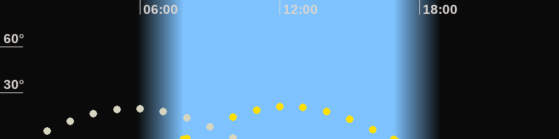 | Höchster Sonnenstand (Kulmination) | 12:23 Uhr (h = 21.4°) |