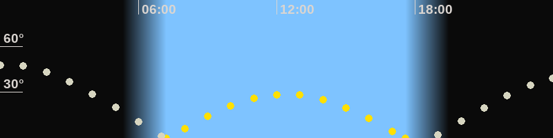 | Höchster Sonnenstand (Kulmination) | 12:23 Uhr (h = 28.7°) |