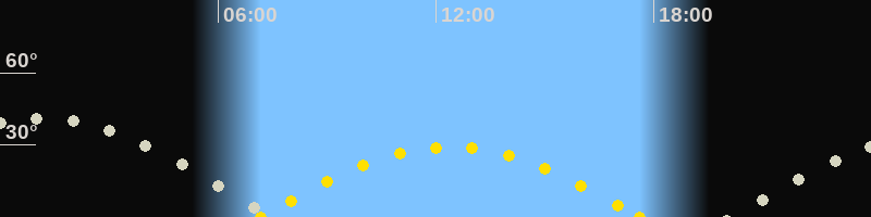 | Höchster Sonnenstand (Kulmination) | 12:23 Uhr (h = 29.1°) |