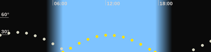 | Höchster Sonnenstand (Kulmination) | 12:23 Uhr (h = 29.5°) |