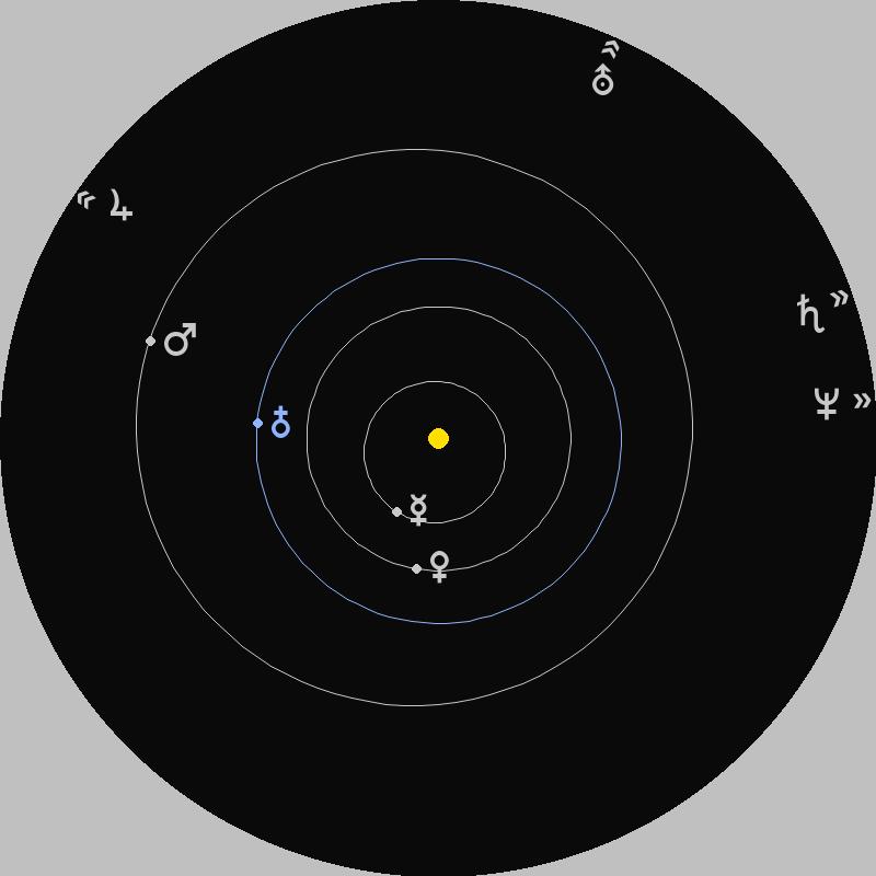 f Merkur g Venus l Erde h Mars j Jupiter S Saturn A Uranus G Neptun