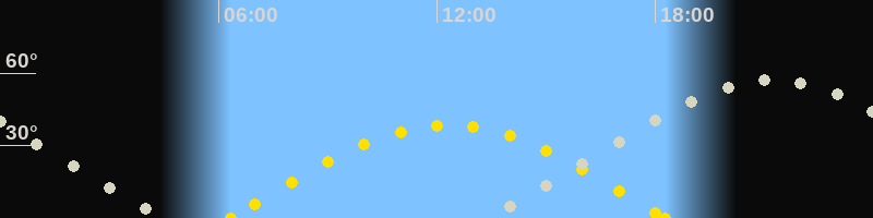 Höchster Sonnenstand (Kulmination)12:18 Uhr (h = 38.4°)