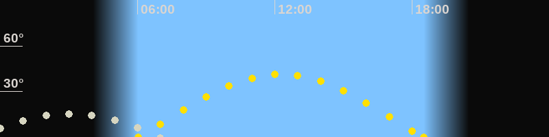 Sonnenuntergang18:30 Uhr im Westen (αAz = 274.4°)
