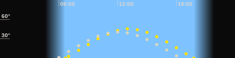 | Sonnenaufgang | 06:39 Uhr im Osten (αAz = 79.8°) |