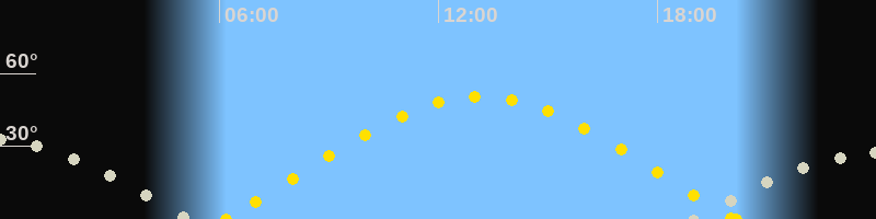 | Sonnenaufgang | 06:10 Uhr im Osten (αAz = 71.6°) |