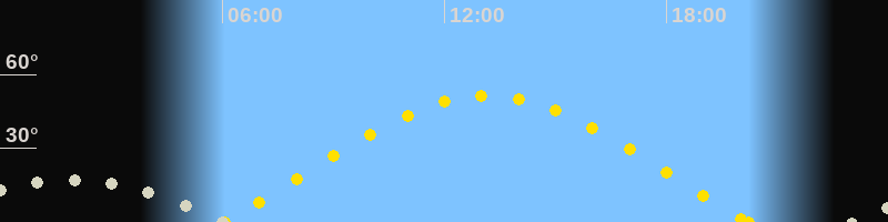 Monduntergang06:02 Uhr im Südwesten (αAz = 233.8°)