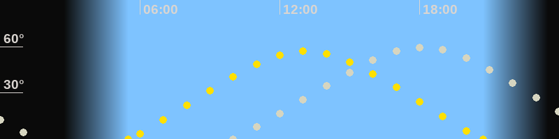| Höchster Stand (Kulmination) | 18:06 Uhr (h=60°) |