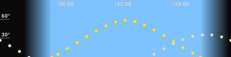 | Höchster Sonnenstand (Kulmination) | 13:06 Uhr (h = 58.2°) |