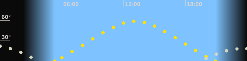 | Höchster Sonnenstand (Kulmination) | 13:06 Uhr (h = 58.8°) |