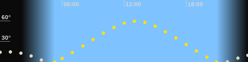 | Höchster Sonnenstand (Kulmination) | 13:06 Uhr (h = 59.3°) |