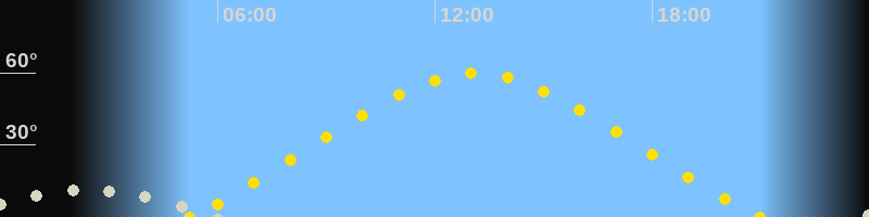 | Höchster Sonnenstand (Kulmination) | 13:06 Uhr (h = 59.7°) |