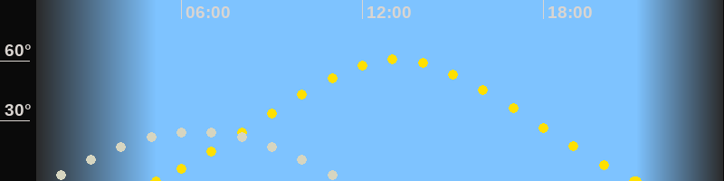 Höchster Sonnenstand (Kulmination)13:07 Uhr (h = 60.6°)