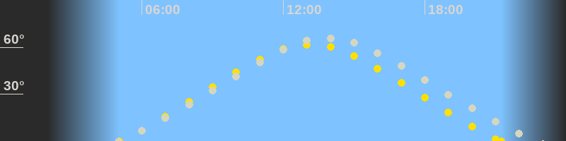 | Höchster Sonnenstand (Kulmination) | 13:08 Uhr (h = 61.8°) |