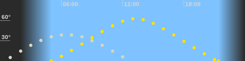 | Höchster Sonnenstand (Kulmination) | 13:13 Uhr (h = 62.6°) |